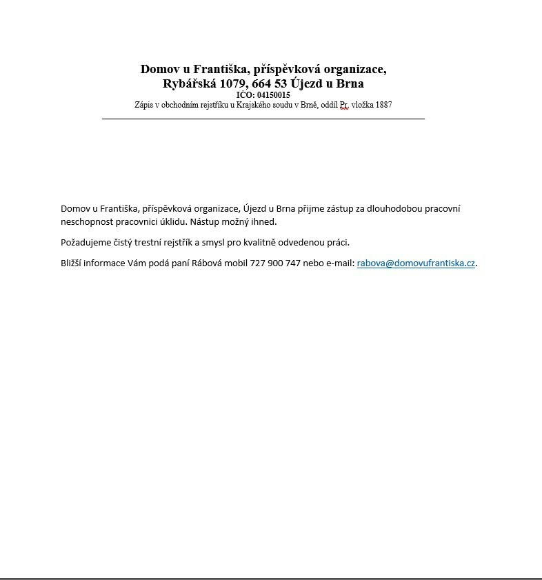 Nabídka práce v Újezdě u Brna